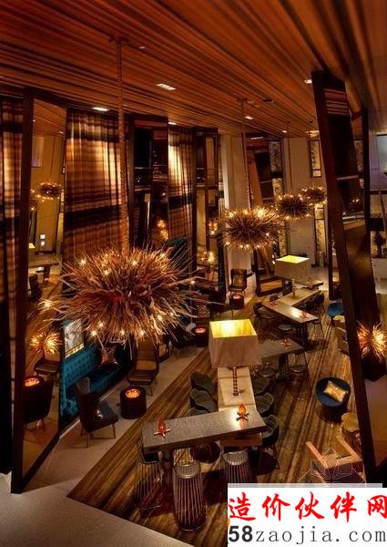 智力圣地亚哥的W酒店设计,灵感为:被海浪打倒的你,爬起来后看到的一抹斜阳,湛蓝的海水以及慢慢降临的夜幕,可能都会因你的站立不稳而使你更加头晕目眩。走进酒店,配饰繁多却不杂乱,色彩厚重的酒吧很是吸引眼球,灯具造型独特,餐厅或跳跃的橙色或优雅的咖啡色,W总可以把各种颜色协调的融合在一起,整体看似零乱,实则绚丽夺目。