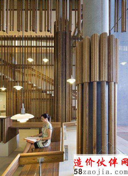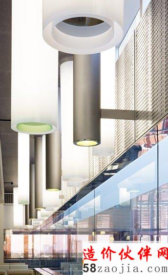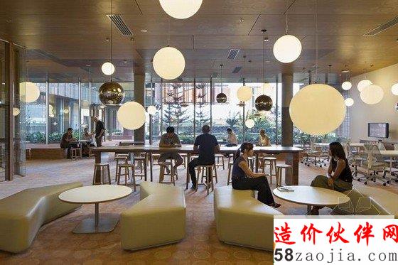 位于澳大利亚昆士兰的翻译研究所办公空间,硕大的空间大量的采用了巨大的落地窗,使之看起来明亮通透,工作区和会议室选择了圆柱形垂直下来的吊灯,强大照明的同时显得简约又有特色,休息区则选用了球形的吊灯,增添活力浪漫气息,几何感十足的木质楼梯很是独特,研读区的木质装饰仿佛进入大自然使人静下心来。整体装饰以简约明亮为主,严谨又舒适。