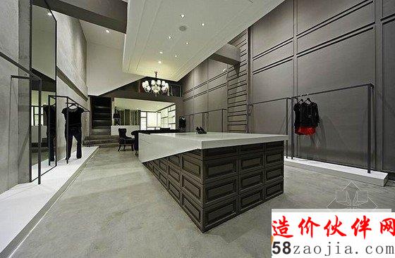 设计师运用传统而简单的水泥、钢材、乳胶漆为主材料,打造出这个低调简约的空间。在空间布局上,力求以最简约的手法达到最好的空间效果,位于中心位置的展示柜既能很好的展示商品,同时又有效地区分了左右人流动向,即使较多顾客同时光临,也不会显得拥挤。白色和咖啡色为空间主色调,低调的视觉元素彰显着简约时尚,空间主角服饰鞋帽得到最完美的衬托。
