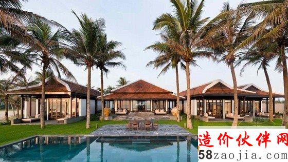 度假村的设计出自一众精英之手,包括AW2公司的著名建筑师RedaAmalou 以及顶尖室内设计师JayaIbrahim 等,他们将越南的民俗特色、奢华的度假村设计以及海滨体验融为一体,尽显匠心妙韵。分层式别墅的设计时尚宽敞,传统越南式屋顶瓷砖全由当地工匠以手工制作,而架空露台及分层式设计更让室内空间感大增。以红砖天花配以雪白墙身及实木地板,再加上种种越南传统文化元素的装饰,饶富越南民族风味,更提升别墅的“当地感受”。内设以深色天然木材特制的雅致家具,配衬淡白丝绸及其他天然布料,营造平静和谐的舒适气氛,令人屏息静气的自然景色则近在咫尺。每栋别墅都可一览无遗岘港广阔天然海滩、昌岛沿岸及附近高山连绵的美景。