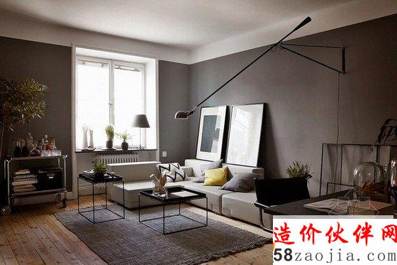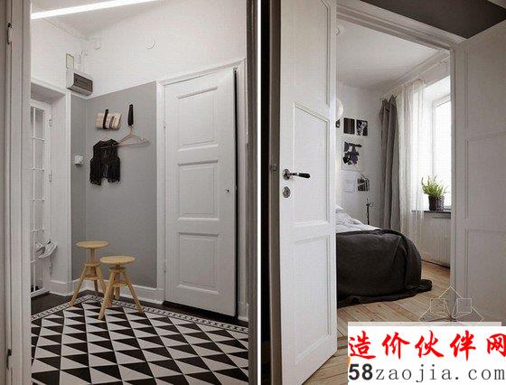 这间47 ㎡的公寓设计主要采用了黑白灰三色的主色调与装饰品,素雅干净,简约大方。当阳光照入室内,空间光影交错,温暖而淡雅。灰色以其独特的中性魅力,将白色的纯净、黑色的大气融合得相得益彰,小小的空间内软装丰富,造型时尚,不落俗套。
