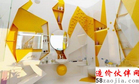 保加利亚的Gemelli设计工作室却一反常态,在一栋房子里设计了两个截然不同的浴室,大胆的创意使得沐浴也变得如玩耍般有趣。