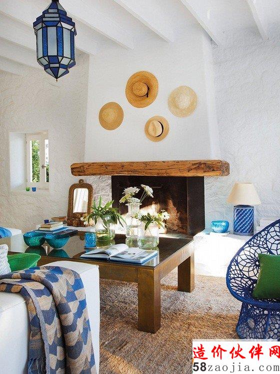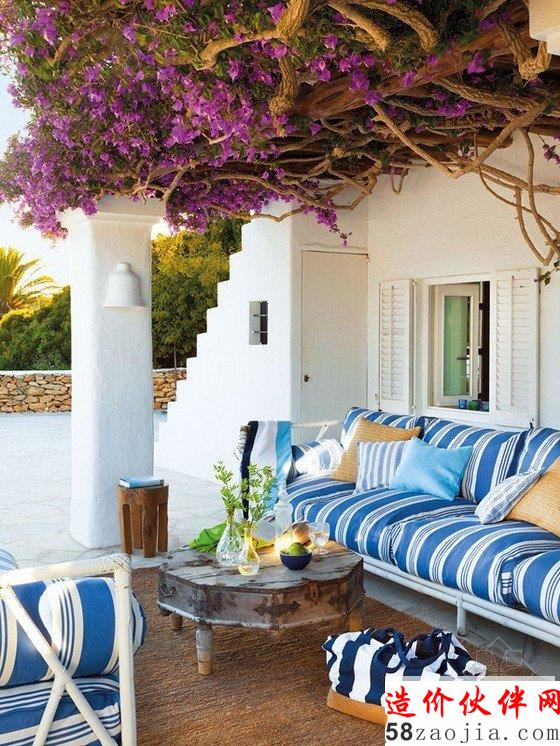这个风景如画的伊维萨住宅的 是在各方面都非常完美,外观设计大气,时尚一个惊人的度假屋。庭院面积涵盖了甜美的紫色花朵,色彩迷人的剂量加入到这个美好的家园。白色的家具与蓝色和白色靠垫,提供舒适的户外座位。一个圆形木桌,装饰用蜡烛和花瓶,坐落在美妙的沙发中间,与室外的装饰完美的对比。在客厅,华丽的木横梁天花板线,白色,蓝色和绿色,提供调色板。这间客房设有灰白色沙发和软椅和迷人的蓝色椅子。在这个空间里暖暖的木质、精美木板、梦幻般的壁炉和神话般的门,搭配组合一个惊人的温暖而清凉的空间设计。