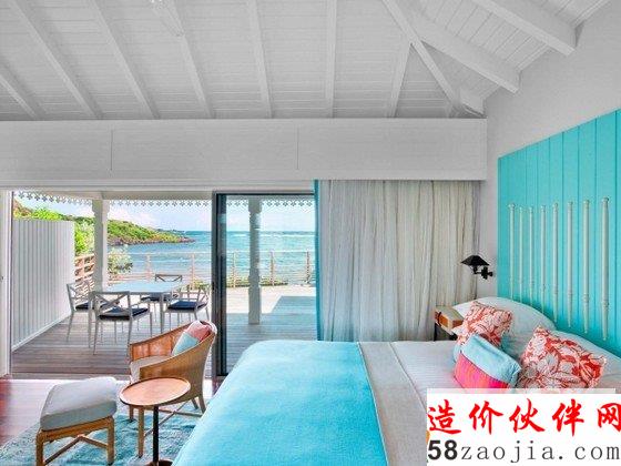 由迈阿密的Luispons设计的圣巴泰勒米度假酒店(guanahani hotel and spa酒店),位于圣巴泰勒米(或圣巴特斯,因为它是俗称)对链中的岛屿组成的小安的列斯群岛的北端。克里斯托弗·哥伦布海岛和桑巴特鲁姆岛,被许多人认为是在加勒比海最美丽的岛屿。该度假村所在的岛屿因为曾属于法国殖民地的缘故,具有典型法式田园风格。没有过多华丽的装饰,呈现出质朴却充满生活气息。遥望天际线,一派与世隔绝的气象,给人予隐居般的度假体验。