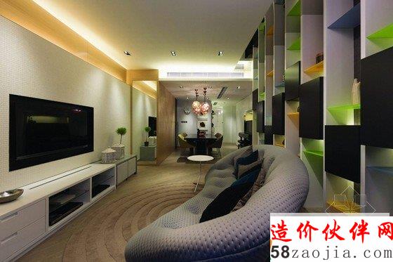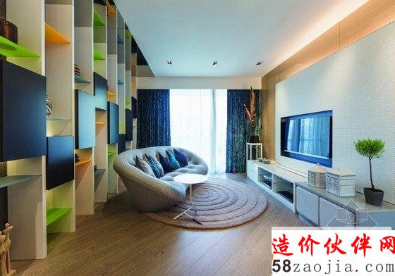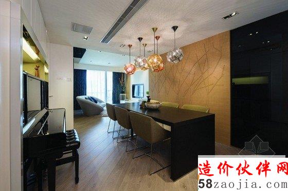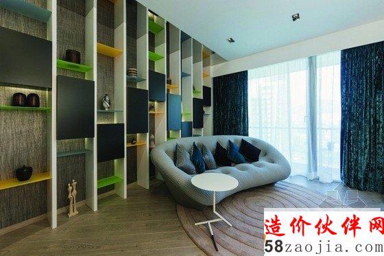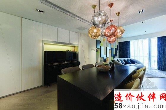 半山一号充满个性韵味的住宅设计,整个住宅空间很有质感。,虽然用亮色进行点缀,但是整体上还是显得沉稳又不失活力,电视墙经过灯光的渲染显得十分动感,背后书架原本质感很弱的彩色亚克力板也被用的很有韵味充满个性,餐厅岩石形状的灯饰很有意思,每个立面的构成感都很强,不论是色调风格,都让人很是舒适。