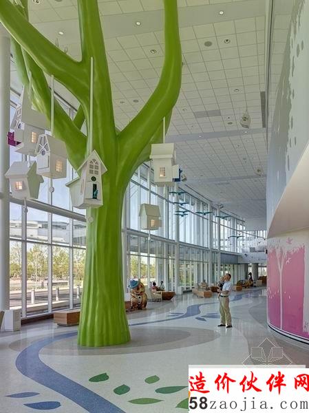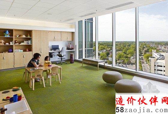 俄亥俄州Nationwide儿童医院设计打破一般人对医院的想法,不在是冰冷的白色,干净亮堂的地面经过色彩的点缀,显得特别的舒心,巨大的整排落地窗,让阳光照射进来,仿佛可以让小朋友觉得温暖,丰富的色彩,多样的玩具,人性化的设计,这里有着一种可以减轻病痛的魔力。