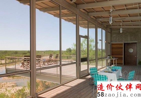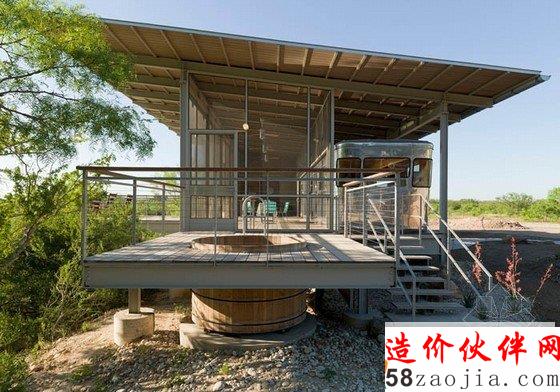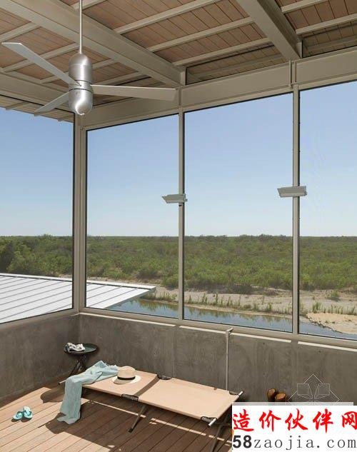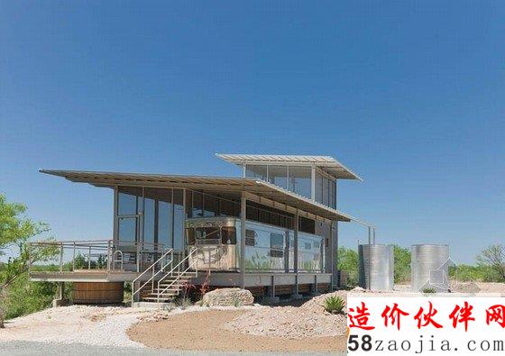老牧场主的湖景车房,一个老式的房子流线型旅游铝拖车是牧场主珍视的财产,于是他把拖车搬迁到自己喜欢的南得克萨斯牧场,那里可以俯瞰纽埃西斯河。由于地质脆弱和且位于容易发生山洪的江边位置,牧场主采用钢架结构,使拖车犹如被放置在一个牢靠的金属摇篮内。