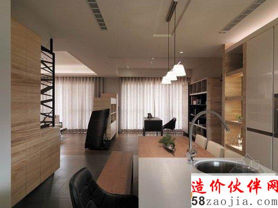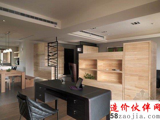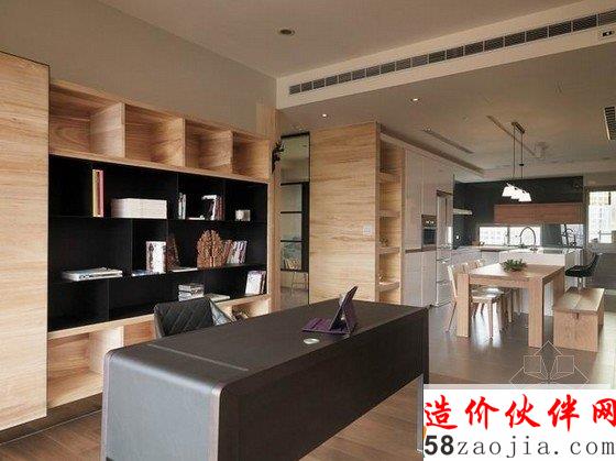 这个约180平方米的竹北馥邑双星简约住宅设计,大量的使用了淡色的木质,木地板,木质隔断,显得清新自然,为了不显乏味,设计师利用黑色铁件当配角,既增加美观度又轻易的分割区域,在厚实的木质中带来轻盈感,深色皮质沙发让清新的家带来一些成熟的厚重感,开放式的厨房和书房,更显随意自然,玻璃推门的画室很适合静下心来,完成一幅作品,卧室以简约为主,大大的落地窗可以欣赏窗外美景。在这样一个视觉触觉都良好的家中渐渐卸下紧绷,沉淀心情。