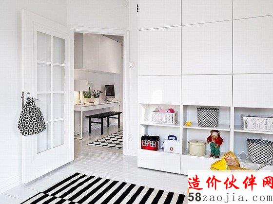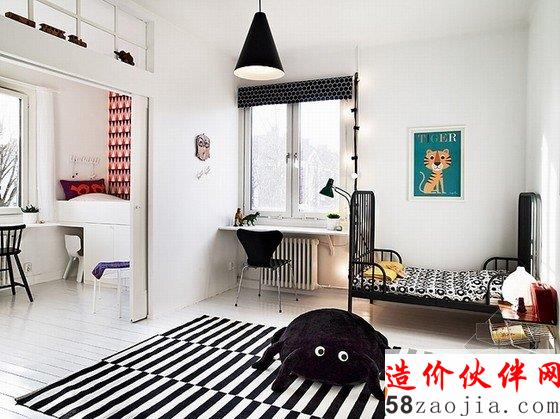 这是一间北欧风的大户型住宅,但色调并不苍白,每个房间都有一个主色调,且多以格子、纹理的形式出现,起到了点缀的效果又不杂乱。空间布局以舒适性为主,每处都有床或者座椅,在哪儿休息都可以。层高较高,所以顶上的收纳空间也很充足,整体看不见杂物,小小盆栽清新健康。