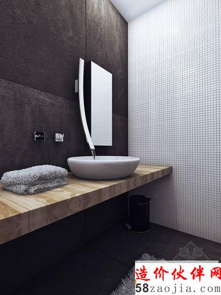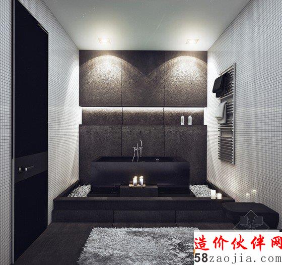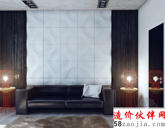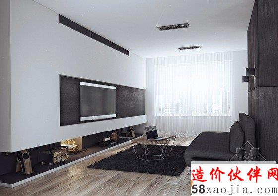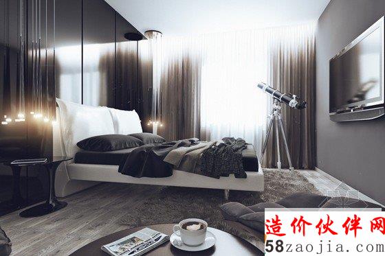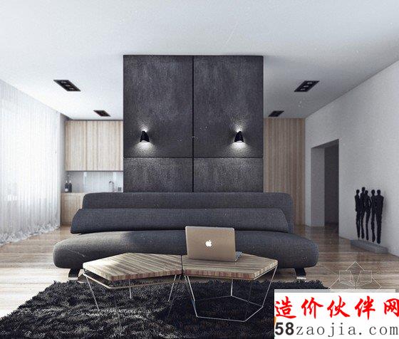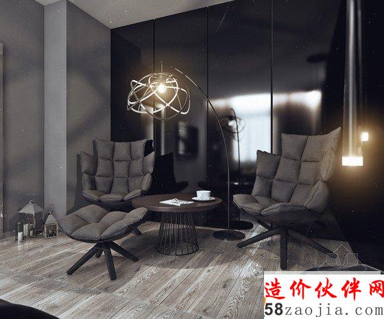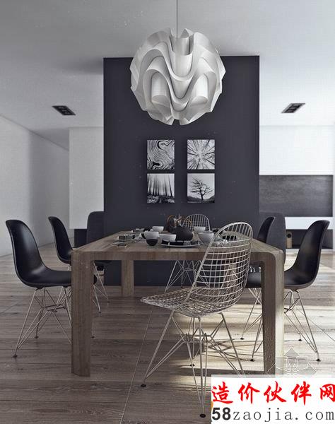 这座公寓,主人用黑白灰三个颜色打造出一个既时尚又充满阳刚的公寓。客厅黑白相互搭配的电视墙很是抢眼,深灰色的沙发和现代的壁炉显得十分的现代化,餐厅与客厅用深灰色的隔断进行分割,原色的木质地板与厨房相统一,线条柔美的吊灯很是时尚,卧室、书房、卫生间也用简单的黑白灰塑造出来一个绝对不简单的空间。