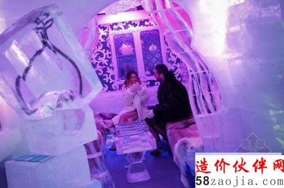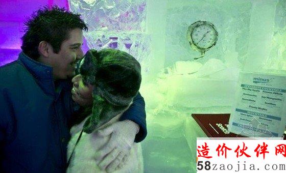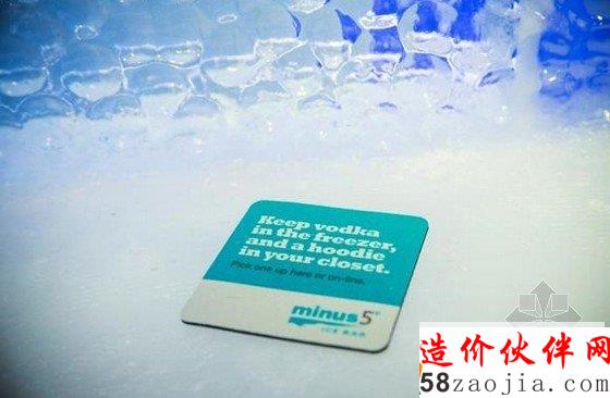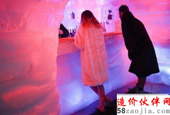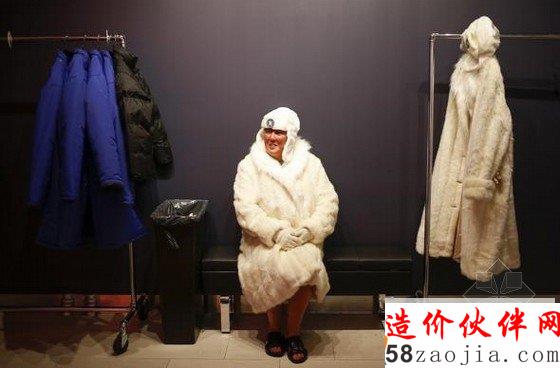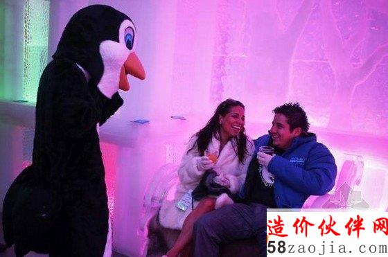 下面,请你穿戴好大衣、手套和棉靴,走进纽约这家“零下5℃”冰吧。据悉,这间“零下5℃”冰吧于7月开业,是由90吨冰建成,温度保持在-5℃,能同时容纳55人,连盛酒用的容器都是用冰做的。