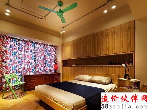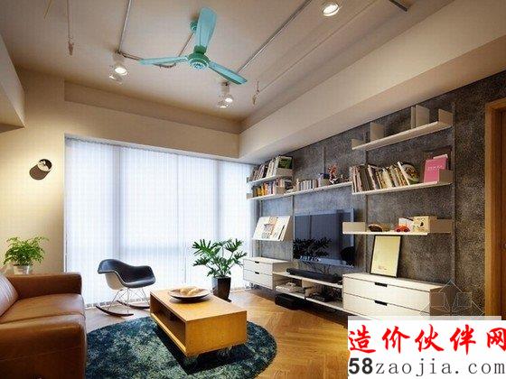 台湾轻工业混搭风格住宅装修设计,顶上裸露着金属管道,灯饰十分简单,彩色小巧的吊扇是个不错的装饰品。室内色调杂而不乱,水泥背景墙较白墙提高了乐趣,较木板又节省成本。家具式样与色调都比较复古,颇有些民国风味。