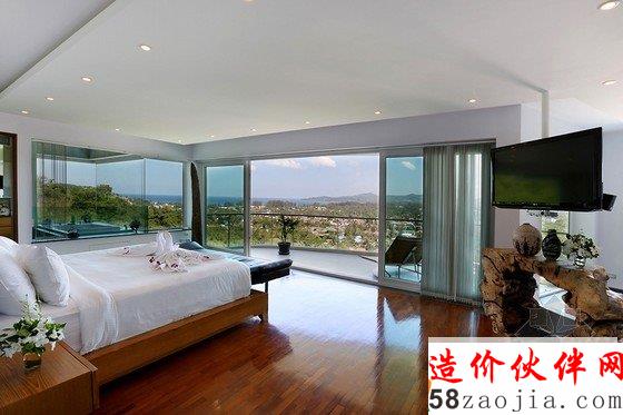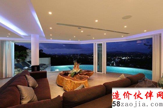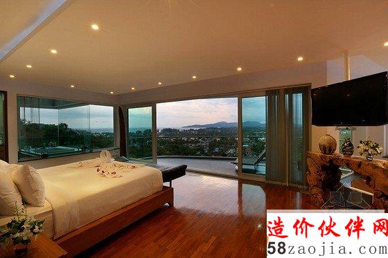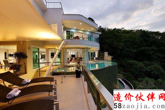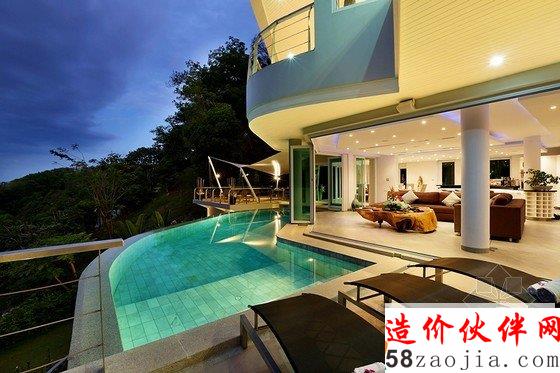 泰国普吉岛现代别墅设计,其中有7间卧室,一个宽敞的客厅、厨房、餐厅、娱乐室、按摩室和一个令人印象深刻的泳池。每一个房间都可以看出设计师的巧妙用心,软化的木材为房间增加了装饰性元素;从泳池的甲板可以直通住卧室;厨房配备了现代化的设备,餐厅配备了做工精良的餐具。整个别墅不论从内还是从外,都透着一股富贵的气息,用最美妙的语言夸赞它都不为过。