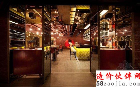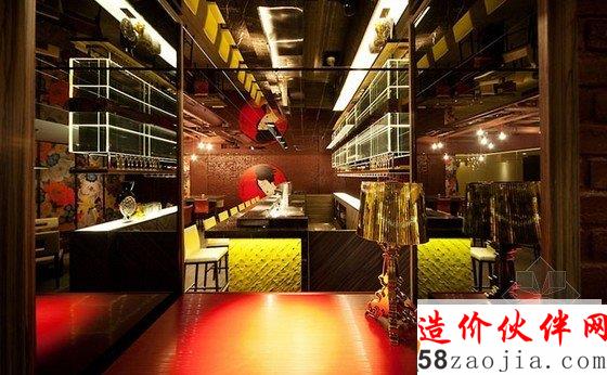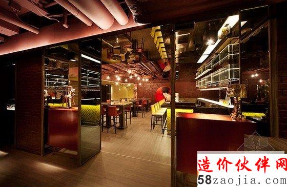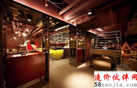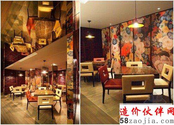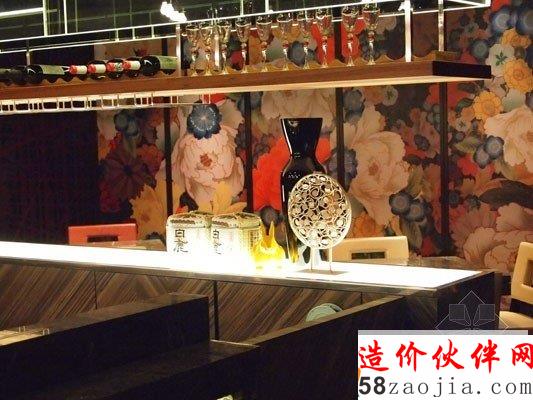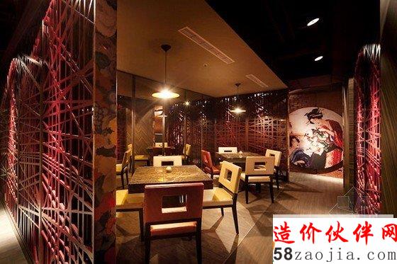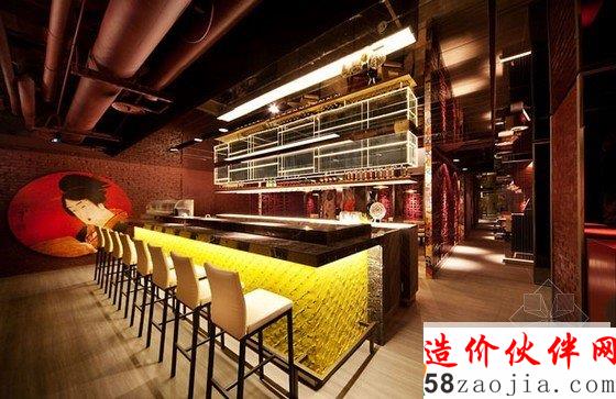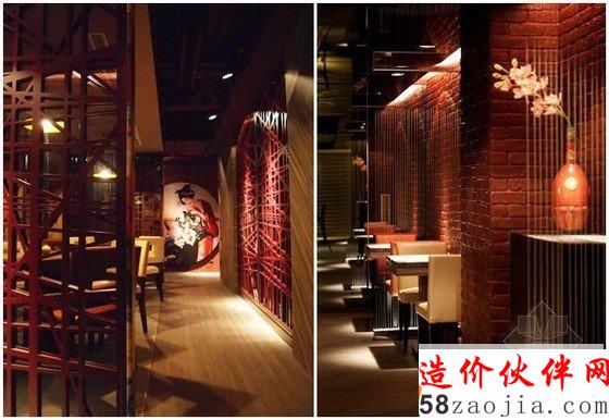 海寿司庆城店餐厅设计,通常在空间里,我们都会用上隔间做为不同区块的区隔,但在商业空间中,太多区隔会使得整体感觉起来过于狭猝。于是隐藏式的隔板,像是利用地面的材质变化,拼出动向的同时,也能很自然引导用餐的食客自动往固定的区域靠拢,再利用一些艺术墙面的衬托,让看似简单的区域,在几个立面的交织与相叠下,呈现出丰富的视觉飨宴。