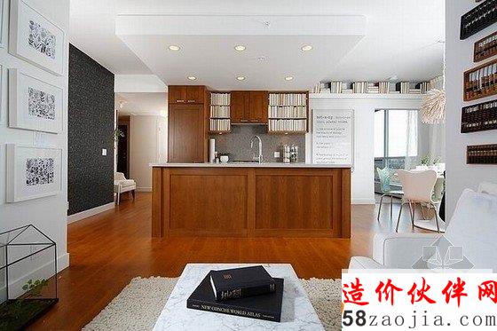 国外很多设计都喜欢开放式的空间,厨房、餐厅和客厅都处于一个空间中,这样的设计更加显得自由随意,视野也会更好,深色的木质地板会显的成熟质感,白色的墙壁和沙发则突显了时尚感,主人是个爱书之人,所以在设计上,多处利用空间成为主人的书架,同时也成为一道风景线,多处的小盆栽更加贴近自然。