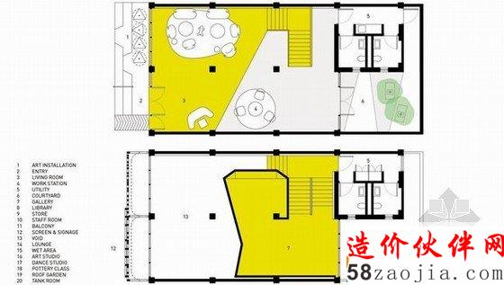 泰国Fai-Fah学习中心设计,项目旨在充当社会的催化剂,通过艺术的手段在泰国为 社会弱势儿童及青少年提供自我发展和创意思考的机遇。SPARK受邀参加 Fai-Fah学习中心的重建项目,项目是由两个位于曼谷住宅区的店铺住宅改造而来。 五层的空间由一个中心的特色楼梯串连,每层都由不同的主题颜色定义,表皮被特色的格架及 Fai- Fah的标志覆盖,突出了学习中心在社区中的显著特征。
