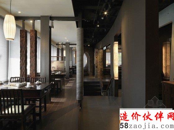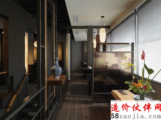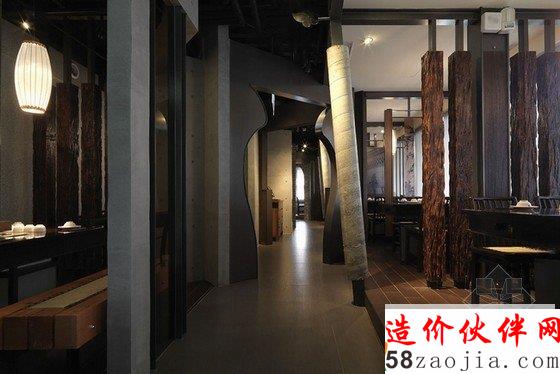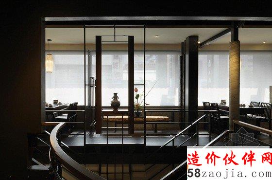 走道间利用分隔墙切割出圆窗、屏门等不规则的门洞造型,除了是必有的动线流动机能外,也可创造视线转移间不同的框景,远望具有层层叠叠的虚实写意,临面铁件方管与柚木组立的造型展示柜,陈列着薰陶人心的艺术展品,在整体空间中带出化龙点睛的效果。座位区穿插铁件隔屏崁入半透贴玻璃,巧妙的与邻桌间隔,对用餐客人来说是不被多余打扰的贴心设计,让客人可以以最轻松的心情品尝美味,不论于视觉、味觉,窗外绿竹随风摇曳,听着潺潺流水声,吃顿饭也变得格外舒适惬意。