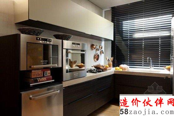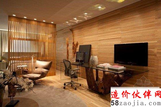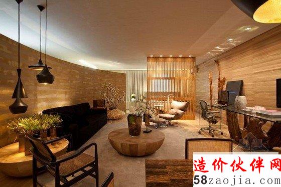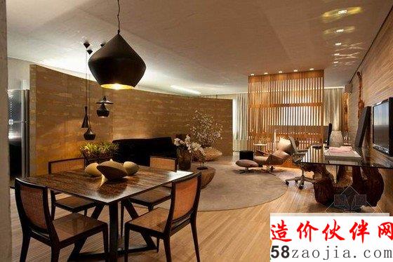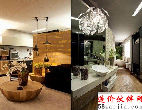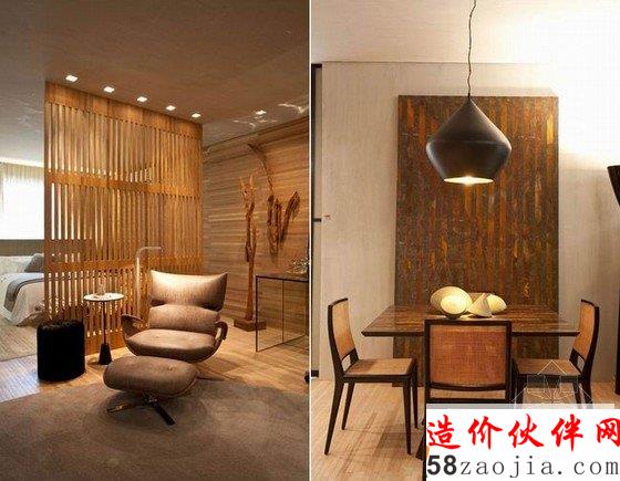 设计师DENISE BARRETTO十分的擅长将自然元素与室内空间相整合,对于一个单身女子公寓,过多的柔美可能会带来无趣,一室的空间将办公,卧室,客厅,餐厅自然的融在一起,木质的使用惬意又不会的带来拥挤感,弧形隔断后则是厨房和卫生间,小空间却十分的舒适。