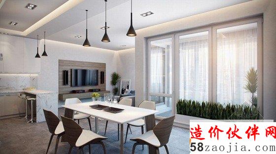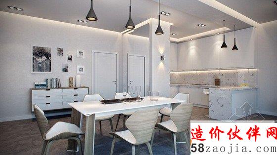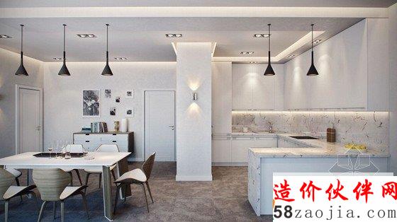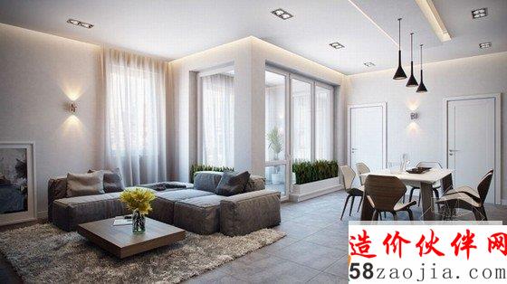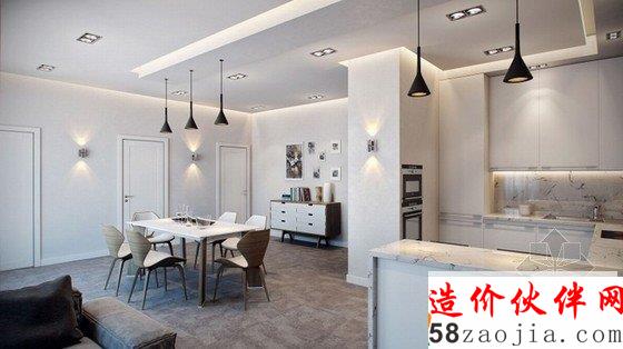 时尚的德国公寓设计,采用通透落地玻璃,不仅延展了客厅的宽度,开拓整体视野,还大大地增强了客厅的采光,除此之外,阳台上的花草也为客厅增添了不少生机活力。立面的墙、天花板上的灯,使之成为餐厅、厨房、客厅的分界线,巧妙地区隔出三个属性不同的场域,可视线上又能一览无遗,维持通透开放的视觉效果。给人展现出充满自由开放,和谐相处的空间格律美。