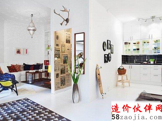 摘要:对于一个50平米空间的奇葩户型,却希望拥有宽敞的客厅和餐厅,还要有私密的卧室,该如何接受挑战?欣赏下瑞典这座公寓,布局根据户型而定,宽敞明亮的空间经过亮色小配饰的点缀,活力十足,而需要隐私的卧室被藏在了储物柜里,下层储物上层做床,十分有趣!