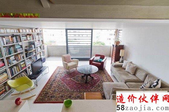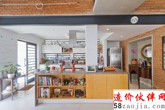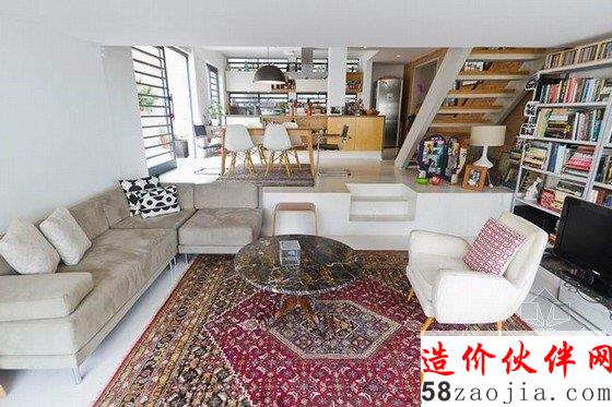 圣保罗翻新住宅设计,开放式格局让人一眼看过去没有压迫感,如果只是白墙似乎略显单调,大面积的赭红砖墙让视线不飘忽,更带来独特的风格味道,再以家具和地毯作定位,一整个大空间也有了规律感,二楼卧室则十分的简单。