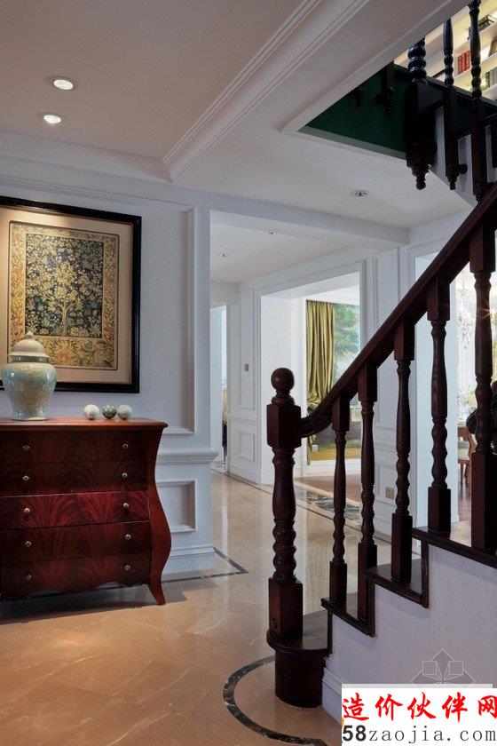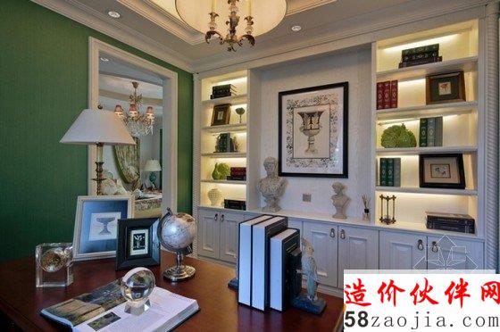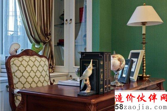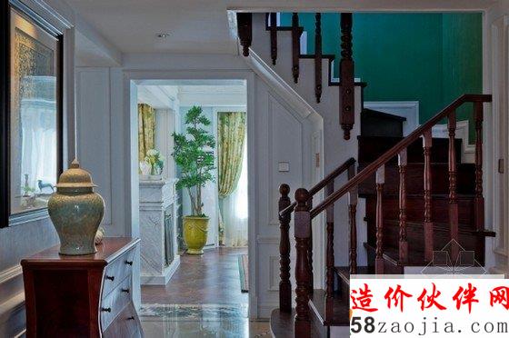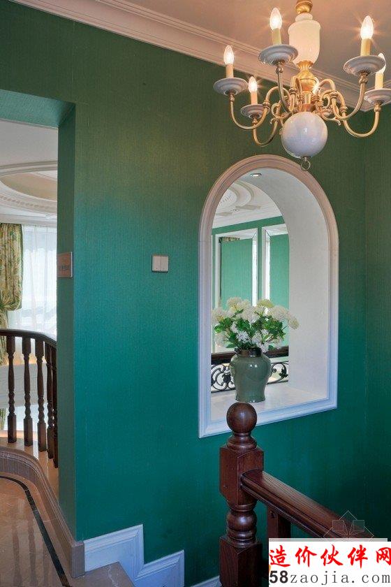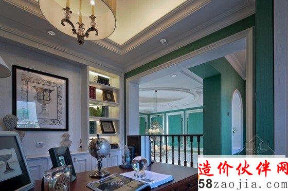 沈阳中海跃层家居装修设计,客厅的层高优势为主人营造了大气的空间氛围,和着室内简练的线条泛起阵阵诗意,顶上的大型水晶吊灯与沙发边桌上的台灯风格统一。跃层家居装饰的独特设计,引领的是另一种居住环境,也增强了空间的层次感,并为主人营造了良好的私密性。二层的书房、卧室也迎合着整体的色调及风格,静谧而自由,主人可以在此听闻窗外鸟语花香,追忆生活的场景片段。空间中随处可见的绿植花卉、壁画装饰以及布艺家纺都统一在绿意自然的主题之下,呈现了一派诗情画意的美丽景致。让原本平淡的住宅空间如沐春风般焕发出新的活力。