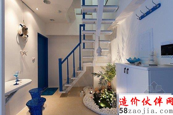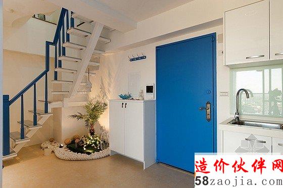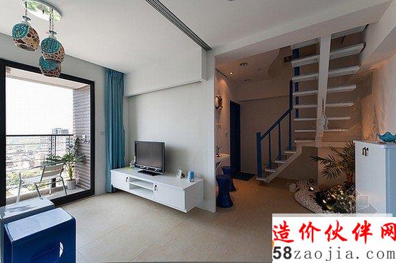 摘要:这套66平方复式装修设计,虽然空间有点小,但是视野特别的好,还有一个衣帽间。所以屋主希望在周末或者假期能在这里度过美好时光,于是设计师想作出另一种地中海的美,以简单、兼具动线与生活机能为主,使疲备的身心放松、找到一个地中海温泉度假天堂。