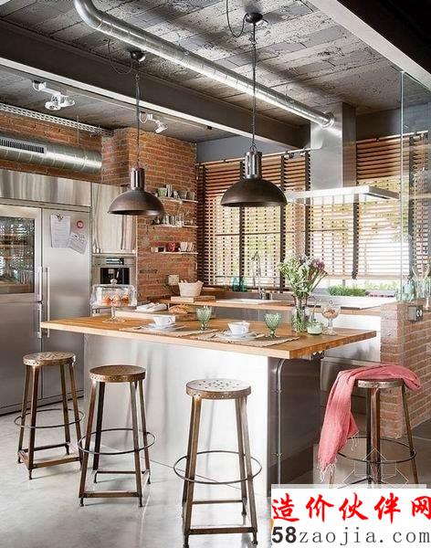 西班牙明亮LOFT住宅设计,混凝土与裸露的红砖带来质朴的轻工业风,几级台阶带来空间层次感,良好的采光使空间明亮温暖。