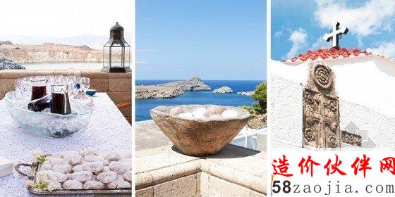 Melenos Lindos酒店只有12间套房。房间门口装饰了手工雕刻原石、精工细作的木头艺术品、手绘的陶瓷,就连木头屋顶也具有装饰性效果。这间酒店显然是希望给短暂歇脚的游客留下一些难以忘记的东西。沿着小山坡慢慢爬上去,走进卫城,就可以发现始建于公元前300年的智慧女神殿。这边刚坐了时光机回到两千多年前,那边的海鲜饭已经在平底锅里滋滋作响诱惑人了。旁边的小村子具有十足的草根烟火味道,遍布餐馆和酒吧。折回酒店,爬上地中海风格的餐厅屋顶吃晚餐,俯瞰着林佐斯港。林佐斯是古希腊的城邦,是曾经的贸易中心和朝圣者心目中重要的落脚点。历史上有很多重力量占据了这里,从罗马人、拜占庭人到圣约翰骑士,最后连奥斯曼人也分来一杯羹。
