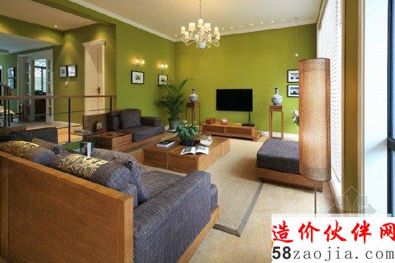 很中式又很清新的混搭风格,清新亮丽的墙面让人眼前一亮,中式混搭风格温暖人心的细部设计,搭配优雅庄重的中式家具很有特点,时尚不张扬,完美的混搭风格。