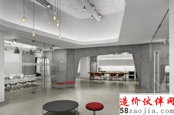 这是Spacesmith建筑事务所早前受聘带领B&Co为香港利丰有限公司美国分部打造的办公室设计。位于纽约帝国大厦5楼,由于面积高达100000平方英尺,楼层足有17英尺高,因此设计师模仿了Soho Loft的设计风格,并且以水泥灰和纯白为主调铺陈,加上外露的管道钢筋和不加雕琢的承重柱,来营造出硬朗冷峻的工业气息。虽然整个室内极少用到鲜亮色彩,但大量灯饰、窗户和落地玻璃的运用为空间带来了充足的光线与通透感,再配上不规则的特殊墙面切割,巧妙点出设计师强调的原始装饰风格与设计感。