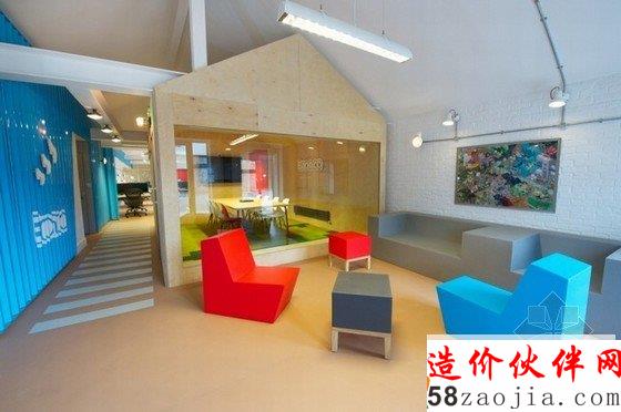 这间“野马”公司的办公室位于英国里彭市,作为一个网页设计以及搜索引擎优化咨询公司,为了寻求新的活力与完善工作环境,特将这个面积为1700平方英尺的单层建筑改造为理想的工作场所。设计理念是为员工创造“终极活跃”的工作场所,一个统一且令人兴奋的工作空间,设计师用蓝色、红色、绿色这样充满活力的配色,让原本枯燥乏味的办公室充满趣味性,位于中心区域的会议室采用玻璃作为分割,可以让整个会议过程清晰的展示在员工面前。这个将功能性,实用性以及趣味性结合在一起的新空间,可以为员工带来无限的灵感与舒适的工作环境。