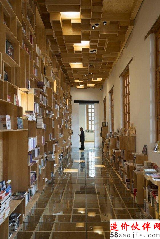 Taller 6A公司在墨西哥城一座18世纪老建筑中的图书馆改造成书店。书店墙面、天花和玻璃地面下方设有若干木质盒子。项目名为“La Ciudadela”,意为“城堡”,此前建筑的功能依次是军事总部、监狱、学校、兵工厂,并于1946年改称图书馆。1987年,设计师Zabludovsky对中庭添加了顶棚。此次,Taller 6A参与改造,添加了现代化设施,并新活动提供空间。设计师在项目北侧的对称走廊上创造了集书店和展览为一体的空间。