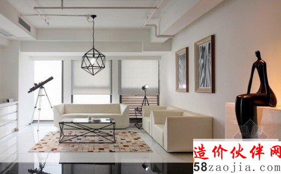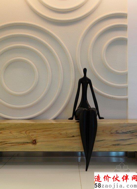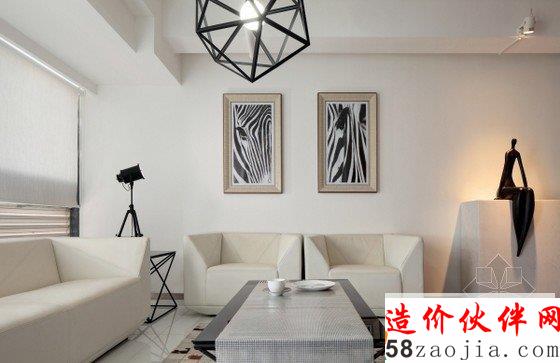 因为简单,才深悟生命之轻,因为简单,才洞悉心灵之静。一切的简单都蕴涵着淡泊宁静的真实。本案的设计以“洁”为设计主题,删繁就简,整体色彩定位中性色调,进门第一眼就让人感到整洁明亮,没有太多繁琐的装饰,几何造型沙发上方悬吊镂空吊灯,斑马装饰画旁静坐抽象小人雕塑,简单的物品构造,安静清新,仿佛时间已静止,空间动静分明,忙而不乱。每一个画面,每一处细节,简而不失其华,约而不显其涩。