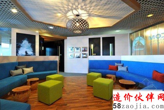 这是法国戛纳Viacom办公空间装修设计,设计师融入了许多现代的设计元素到设计中,细节之处非常有趣,原木墩、彩色立体方块座椅,大胆的色彩,给人带来的是强烈的视觉冲击。办公入口沙发组合划分一个休息空间,整个办公氛围呈现出欢乐,轻松的感觉,木质元素能够让浮躁的心情沉淀下来。