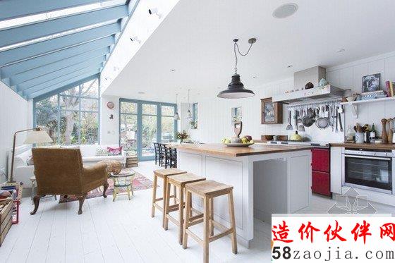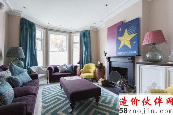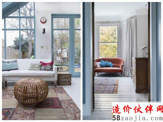 这座乡村风格家居位于伦敦西部Shepard‘s Bush镇上,空间有着乡村建筑惯有的宽敞,拆除了厚厚的墙壁,用多扇窗户取代,光线的射入让空间更显明亮,色彩的搭配也是绝对的两点,淡淡的蓝色搭配印花地毯有着清新淡雅的质朴气息,厚重的绿松石色和蓝色,紫色又显得静谧独具韵味。