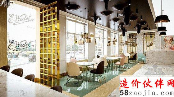 异想天开的Wedel咖啡店室内设计,由波兰设计工作室Lesinska Concept设计,表现为巧克力梦工厂。服务波兰著名的糖果公司“e.wedel”,装修风格充满威利旺卡式风格。一旦进入,大理石台放置一系列黑巧克力蛋糕,有悬挂的帽子在上面,一个个的悬浮着,复古灯具靠近棕色天花板,仿佛巧克力泉水坠下。客人在这里,无疑会感觉自己赢得了金门票,同时享受店里提供的美味点心。不同的作为区域由大胆的家具定义,设置精致的黄金精加工和灯具。闪闪发光的表面,柔和的色彩增强了这些效果,使用传统的材料,例如木,石材,因为其耐用性和永恒性。
