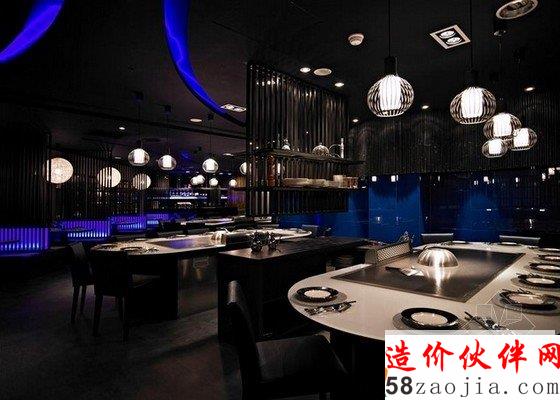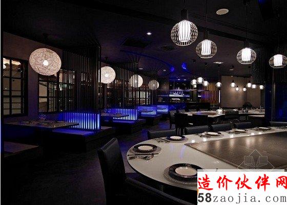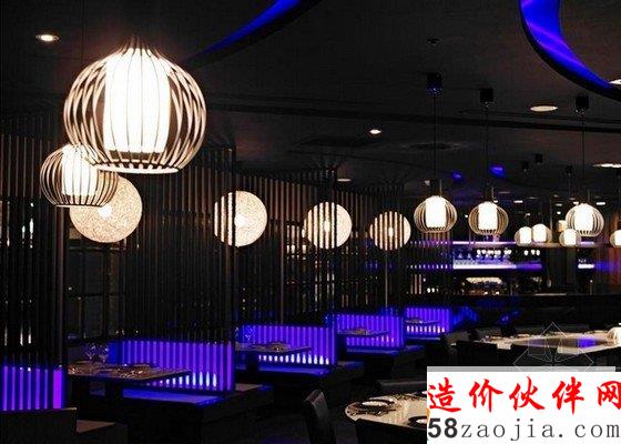 天花板的弧形曲线勾勒出不同格局中的的律动感,白色圆形灯光好似珍珠浮缀于空中,与蓝色灯带交互呼应,让人感受用餐环境的清爽也强调出视觉的焦点,透过光影细腻铺陈,营造时代中的华丽感,也串联起所有用餐空间,让设计与美食结合,使每位顾客都能体验一场视觉与味觉的双重飨宴。