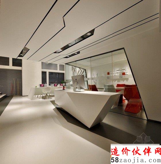 成都万科钻石广场loft办公室设计,设计理念来源于对自然的向往与追求,自然万物有着不一样的形态、生命和节奏。自然是一种无形、抽象的事物,所以设计师在本案中采用不规则形和块面变化来诠释大自然的美。原有室内空间相对方正,设计师以建筑空间手法入手,通过曲折、斜向及切割体现关系的变化,使空间产生一种韵律的节奏。