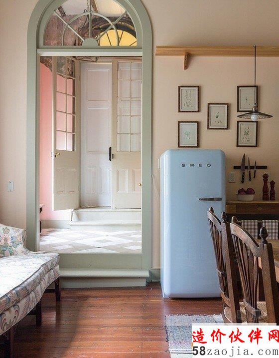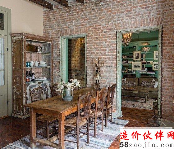 怀旧复古法式风情乡村住宅设计由洛根基伦室内设计完成,坐落在美国新奥尔良的法国区。入口处采用了典型的法式拱形门框,漆成马卡龙色更显清新活泼。法式乡村的重点元素便是呈现木作刷旧、洗白色调的怀旧仿古风情,餐厅区域保留着古老的红砖墙、旧木门框与横梁木作,很简单也很有乡村味。再往里走,水晶灯、铁艺旋转楼梯、老式的不加遮掩的壁炉再加上软装的点缀勾勒出一丝流浪的吉普赛风格。