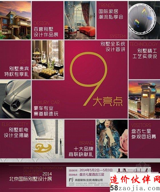 活动期间百套精彩典藏级设计方案发布,让现场深入了解别墅设计。四场精彩别墅专业知识讲座:由知名设计师刘磊为您讲解自己的设计理念与思路,诠释国际别墅装饰设计流行趋势;特邀北京顶级设计师张萍现场演绎别墅大宅全系统设计,从理念到实施,从选材到色彩,由设计到高端生活智能系统全套设计方案,现场体验真实的高端别墅生活;尚层装饰别墅装修御用水电工程师李新利莅临现场,进行别墅机电设计全揭秘;承办方尚层装饰独创别墅施工工艺首发,尚层装饰别墅装修知名总工程师王恩来解密施工陷阱,成就完美别墅生活。盘古七星酒店全程开放行政套间和七星公馆样板间,供现场嘉宾观摩;十余家顶级家居品牌联袂献礼,发布最新家居装饰新品,让利别墅设计展现场嘉宾。