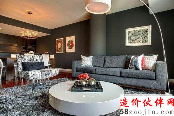 洛杉矶公寓优雅的核心是开放式的客厅和餐厅,通过大胆的色彩搭配,醒目的对比和纹理的运用创造出个性。黑色和白色的墙壁定下了时尚生活场所基调。银色圆形图案增添了一丝趣味性的,而木地板和电视柜带来温暖。白天,自然光通过大窗户涌入室内,有效增强了空间感。休息区则用丰富色彩充分“添香”,黑色的厨房清爽,同时不乏优雅。客厅的室内设计方案进一步考虑到房子的其余部分。主卧室在黑色配色基础上搭配较强石灰颜色背景墙和图案。