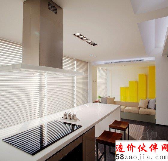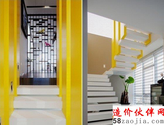 位于北京一间大约81坪的复层透天别墅,设计师以多元独特材质与简约线条,混搭出创意视觉意象的居住空间。玄关的鞋柜面使用珠贝材质与不锈钢收边,并搭配铁件隔栅展示柜,同时展示物品更能区隔空间;而客厅俐落却优雅的切割线与选转式电视桿的运用,营造出不同角度的视觉端景;走进餐厨区域,不锈钢和实木交融的冲突让机能和美观并进,随中岛吧台延伸至紧邻的小卧榻,堆砌出宁静写意的空间氛围;楼梯则以时光隧道为设计意念,让悬空结构来体现出空间的美感,并使用亮黄色来营造楼梯的轻盈与趣味性。书房区域延续亮黄色彩,让墙面的几何与动感线条趣味端景;卧室则以黑白灰色為主,辅佐线板、墨镜和不锈钢层层开展,展现不言而喻的气势。更衣室更以不锈钢镜面做收编,营造精品旗舰店的大器氛围。