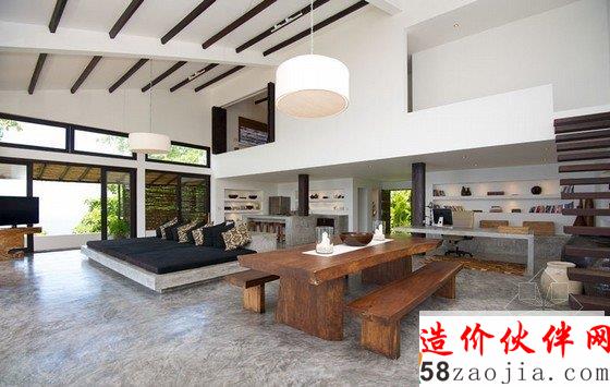 这座名为Casasdel Sol的热带风情别墅位于涛岛西北侧,创造了一个休闲放松的空间。炎热的气候、阳光和大海的自然环境,构成了这样一个天堂般的岛屿。室内采用中性的颜色设计,时尚舒适的家具,是一个可以放松休息的好地方。别墅主要特点是现代化的室内装饰与当地异国风格的结合。桌椅都用当地的原木制作,百叶窗避免了阳光的直射。是一个在海边的绝佳度假胜地。