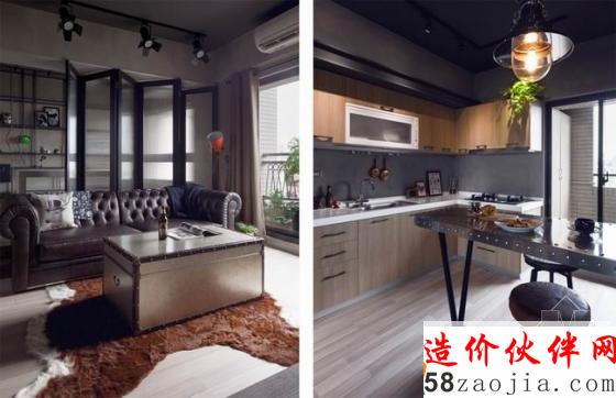 设计师利用红砖、铁件、金属、钢筋、木头与皮革材料,表现粗犷不修饰美感,如果想要强调灯光层次,不妨透过轨道灯分区配置,可在客厅中营造丰富灯光表情。