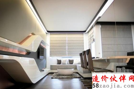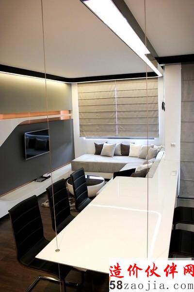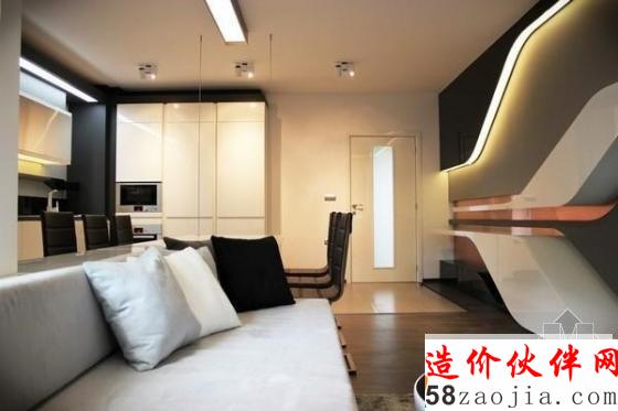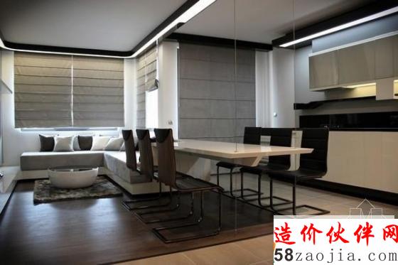 这间位于保加利亚80平简约住宅,是年轻家庭的私人住宅,设计师的目的是让空间更现代更具吸引力,并且创造一个温馨舒适的氛围。超炫电视墙装饰,黑色、白色和各种色调的灰色,加上流线型线条的使用,使得室内简洁明快。