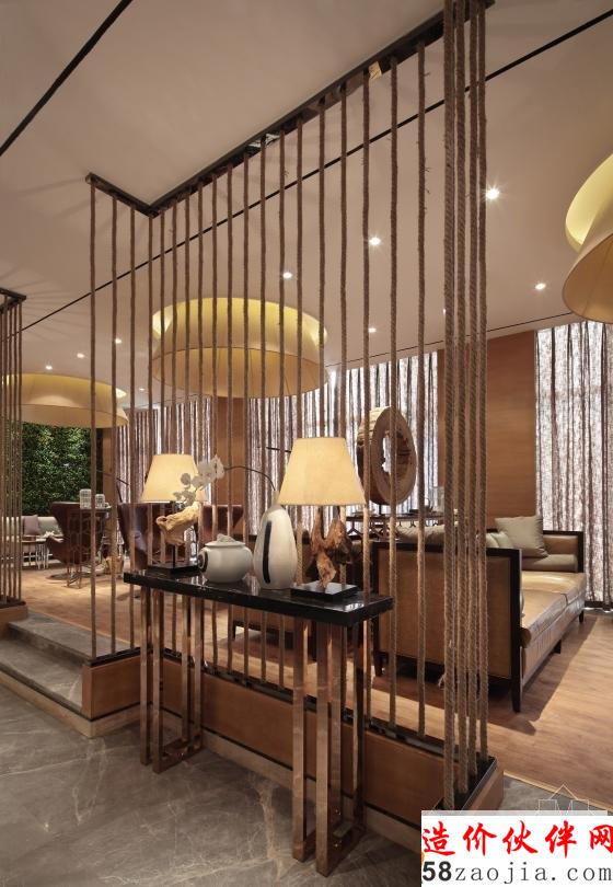为避免大量的木材质使得空间过于软榻而没有力量感,在家具、饰品等摆设就要进行考究,石材、玻璃、不锈钢条、皮质沙发是不错的选择,用刚性材质打破而得以平衡。将现代元素和传统元素结合在一起,以现代人的审美需求来打造富有传统韵味的事物,规律中不失随性洒脱,让传统艺术在当今社会得到合适的体现。