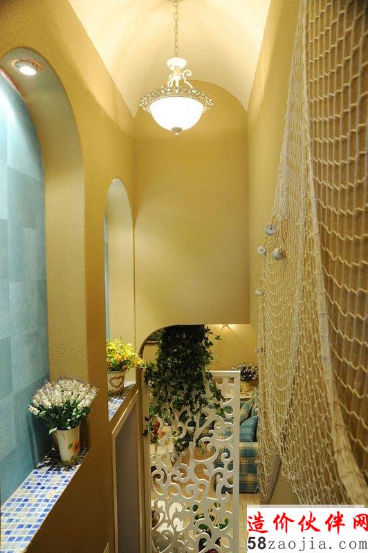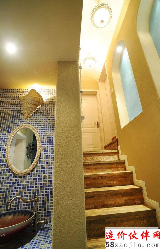 78平唯美“蓝天碧海”地中海家居设计,透过自然原石的色彩呈现石板道路意象,搭配洒落场域里的充裕日光,自然呈现地中海风格的浪漫情愫。