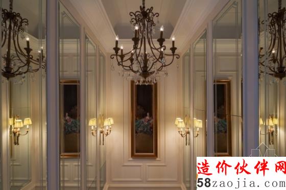 设计师在优雅浪漫的主基调下又营造出移步换景的空间美感,强调建筑绘画与雕塑以及室内环境等的综合性,亦平衡贵气极致的感官冲击,绚丽相映的水晶光芒,凝聚偌大空间的情感,华丽却不落俗。镜面长廊,宛若水面波纹交错的柔性与动态,显出引人驻足的奢华布局手法,诠释了设计师对大宅精神的掌握力度。