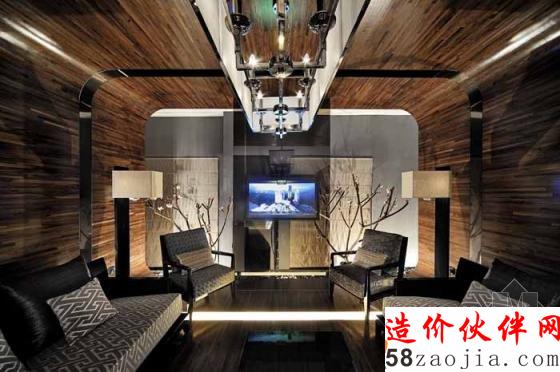 售楼处色彩以深色沉稳为主,选用胡桃木,咖啡洞石,拿铁灰大理石,巴蒂灰大理石,碳色不锈钢等材料。咖啡洞石大气脱俗。因中式风格色彩一般比较深,造型比较古典。简单明亮的吊顶,素雅又不失个性,对比色造就了空间的层次感。